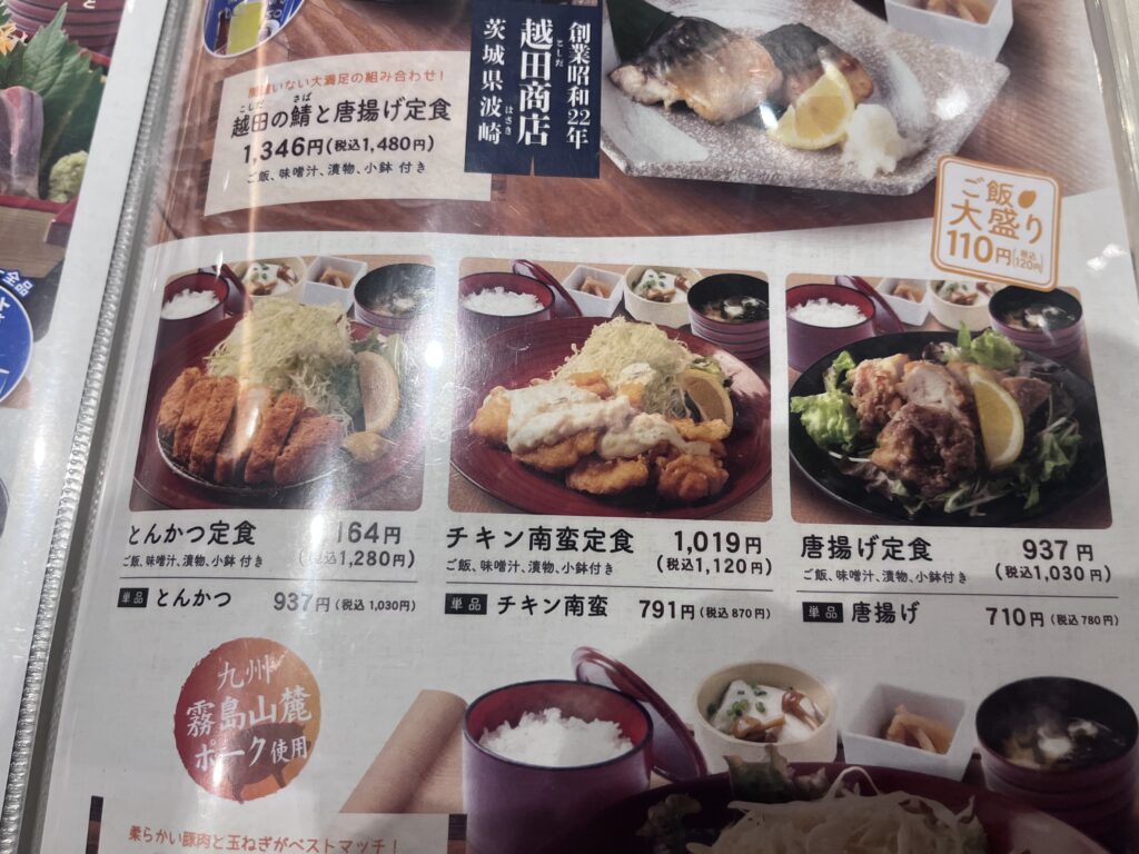 今回は唐揚げ定食(1,030円)を注文しました。