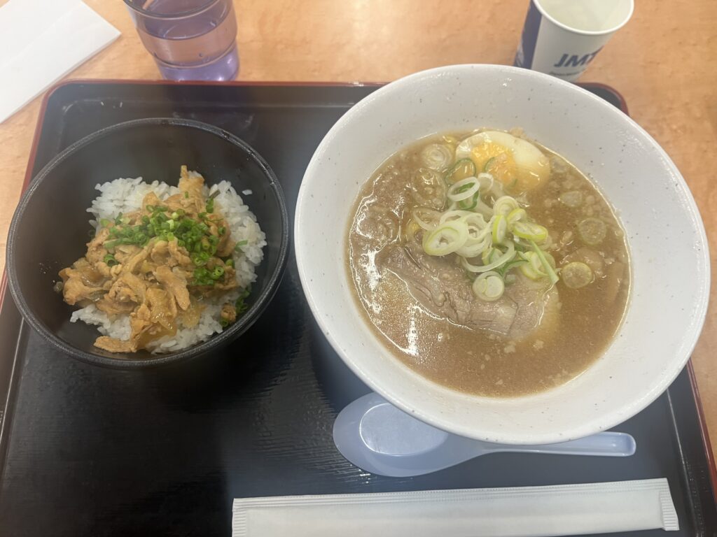 高坂インターチェンジで、味噌ラーメン+ミニスタミナ丼。